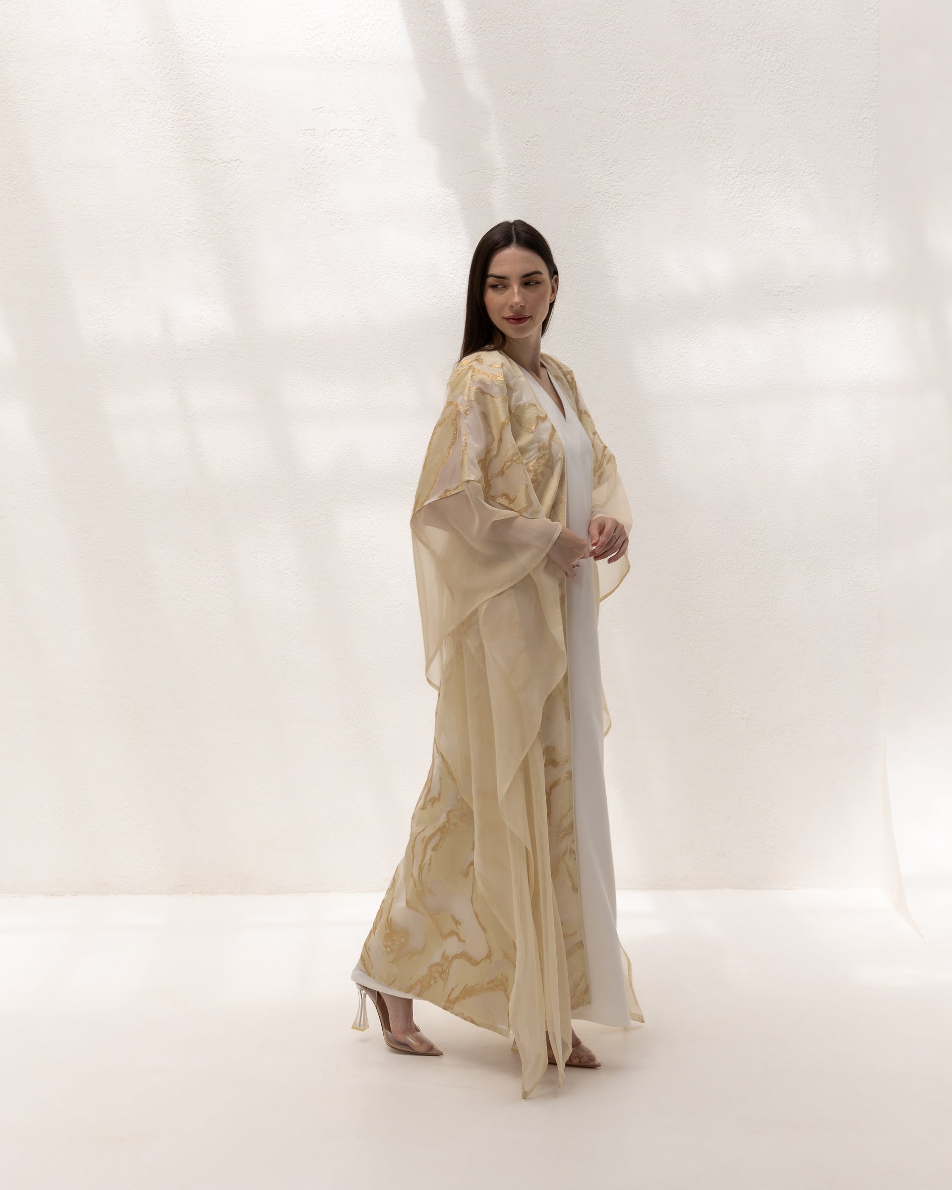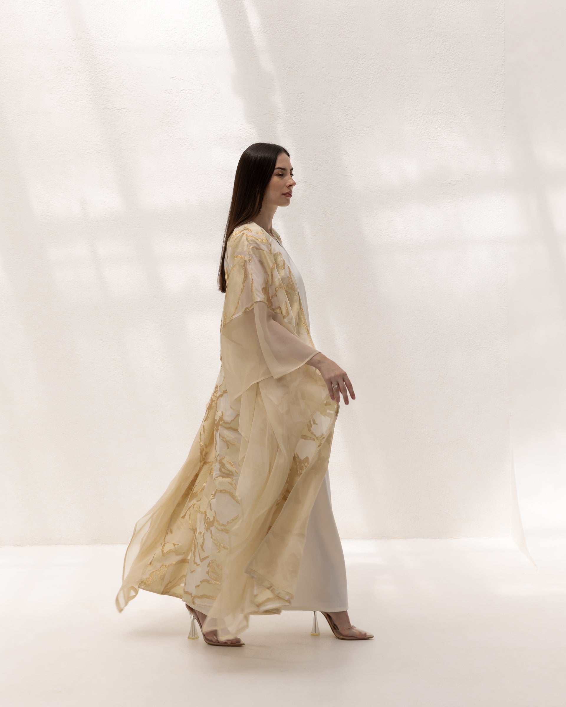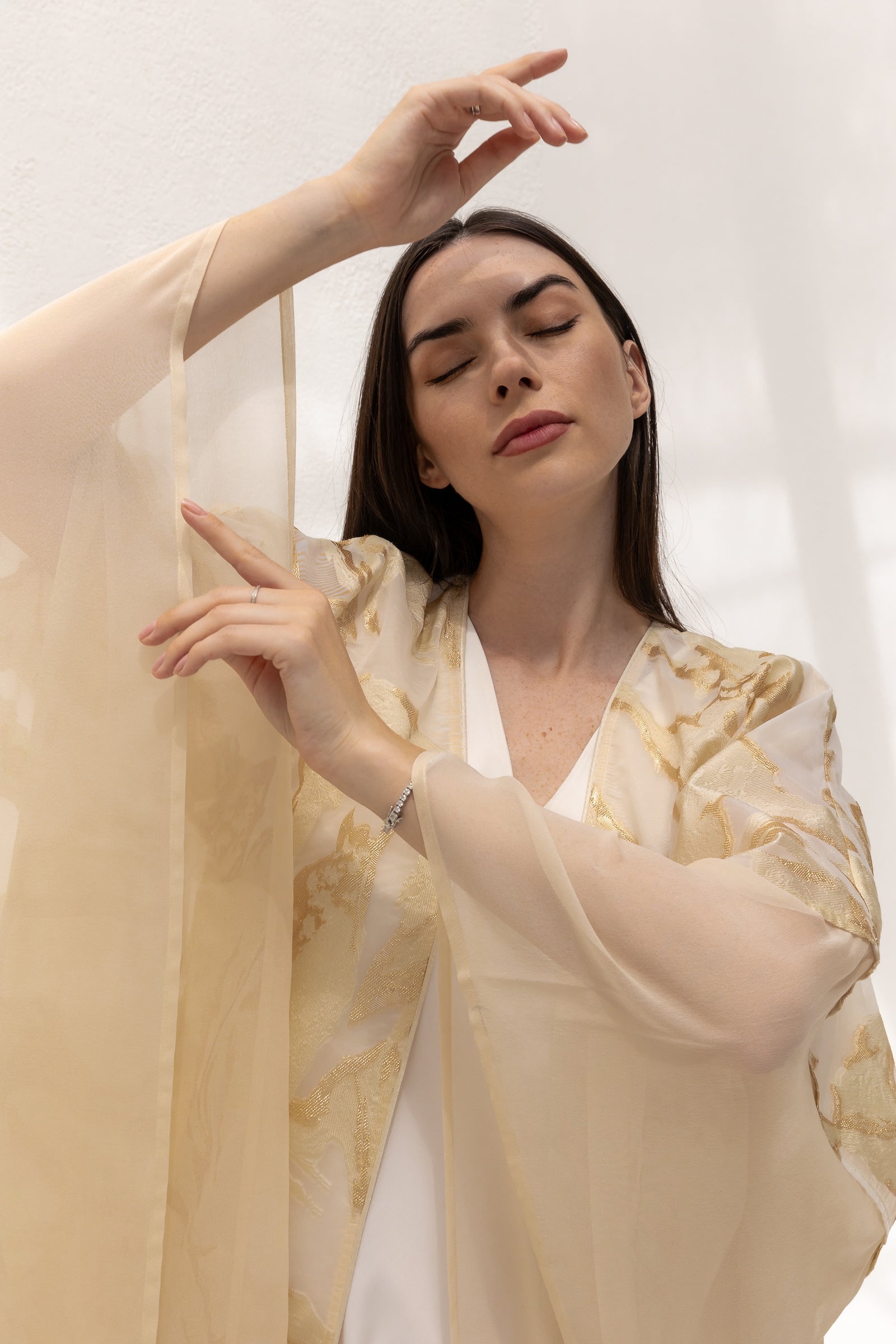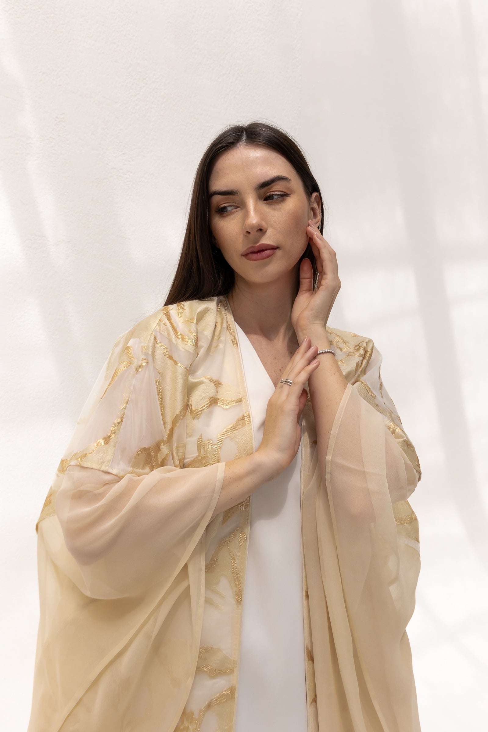 Crafted from luxurious fabric, this masterpiece captures the golden tones of the desert with an exquisite pattern. Su...