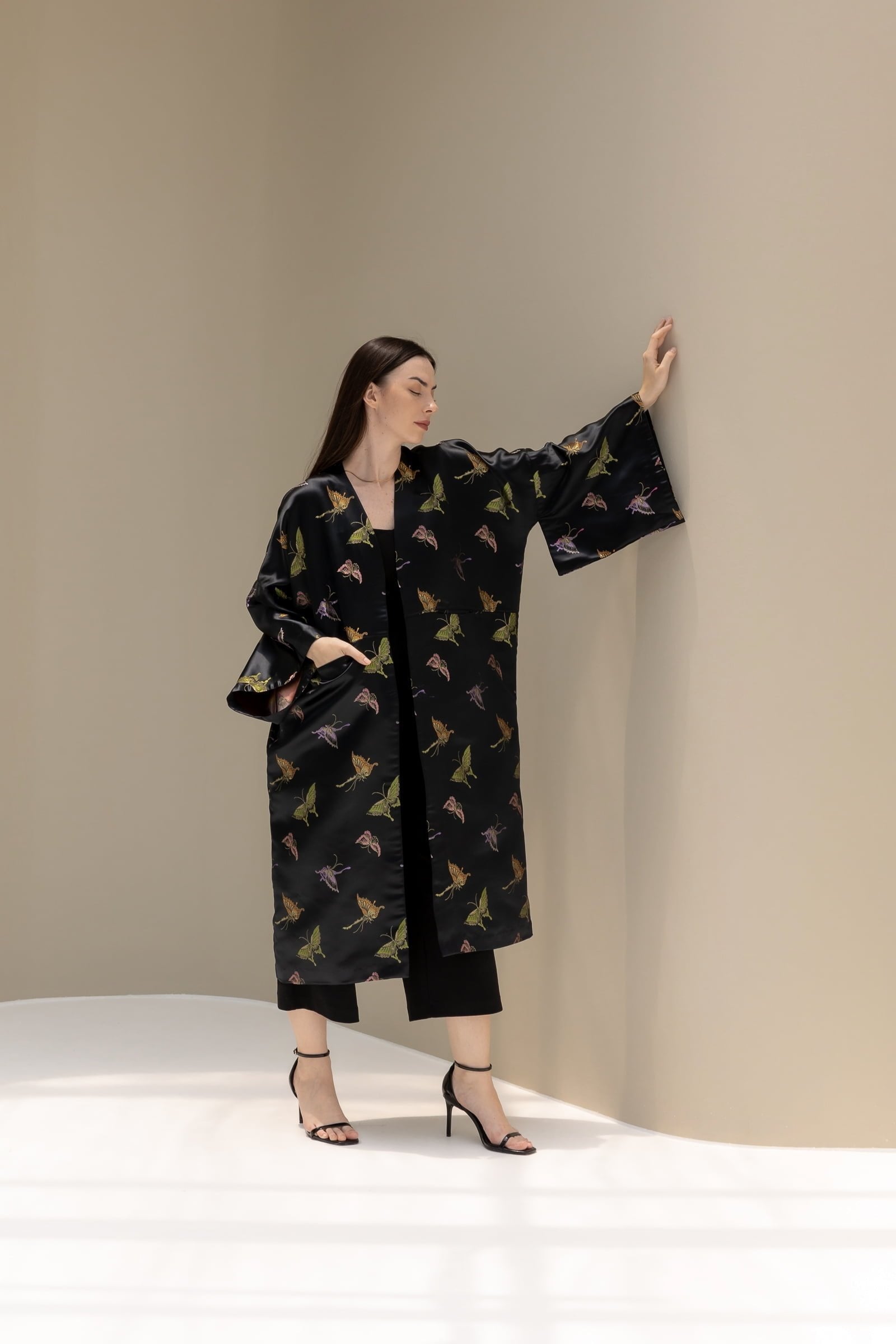 Elegant Black Butterfly Kimono