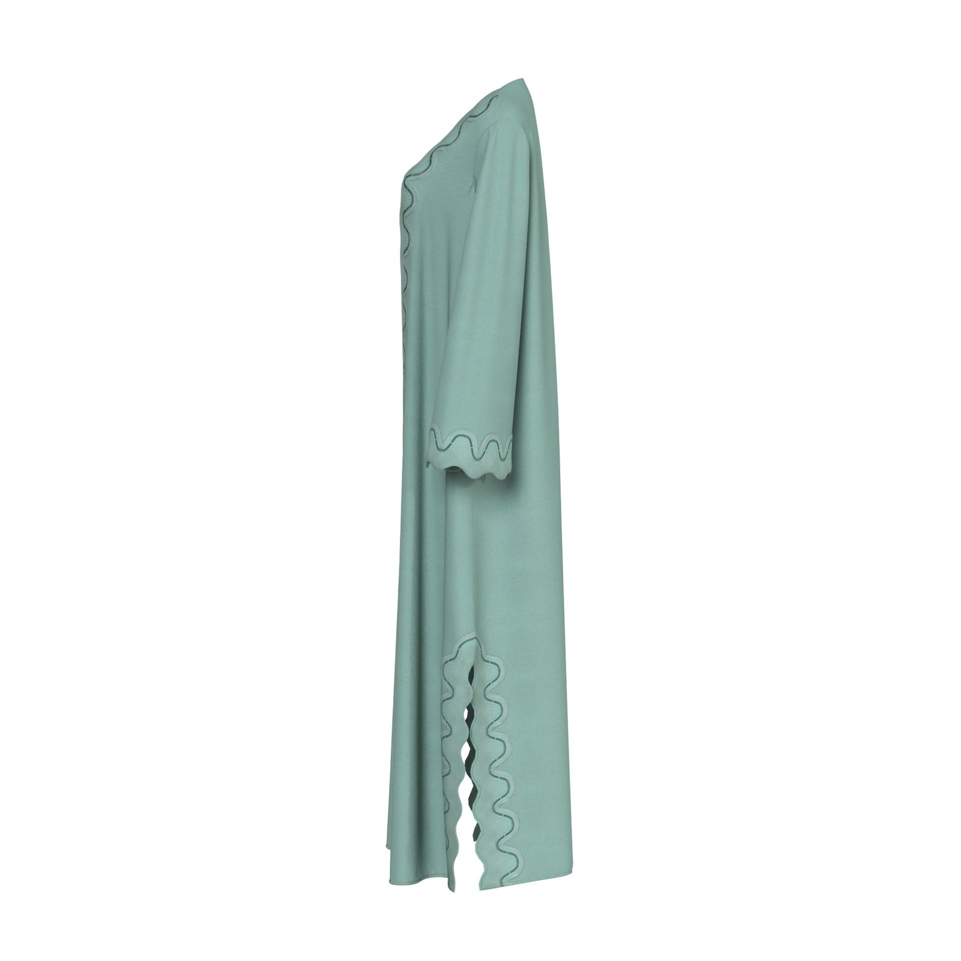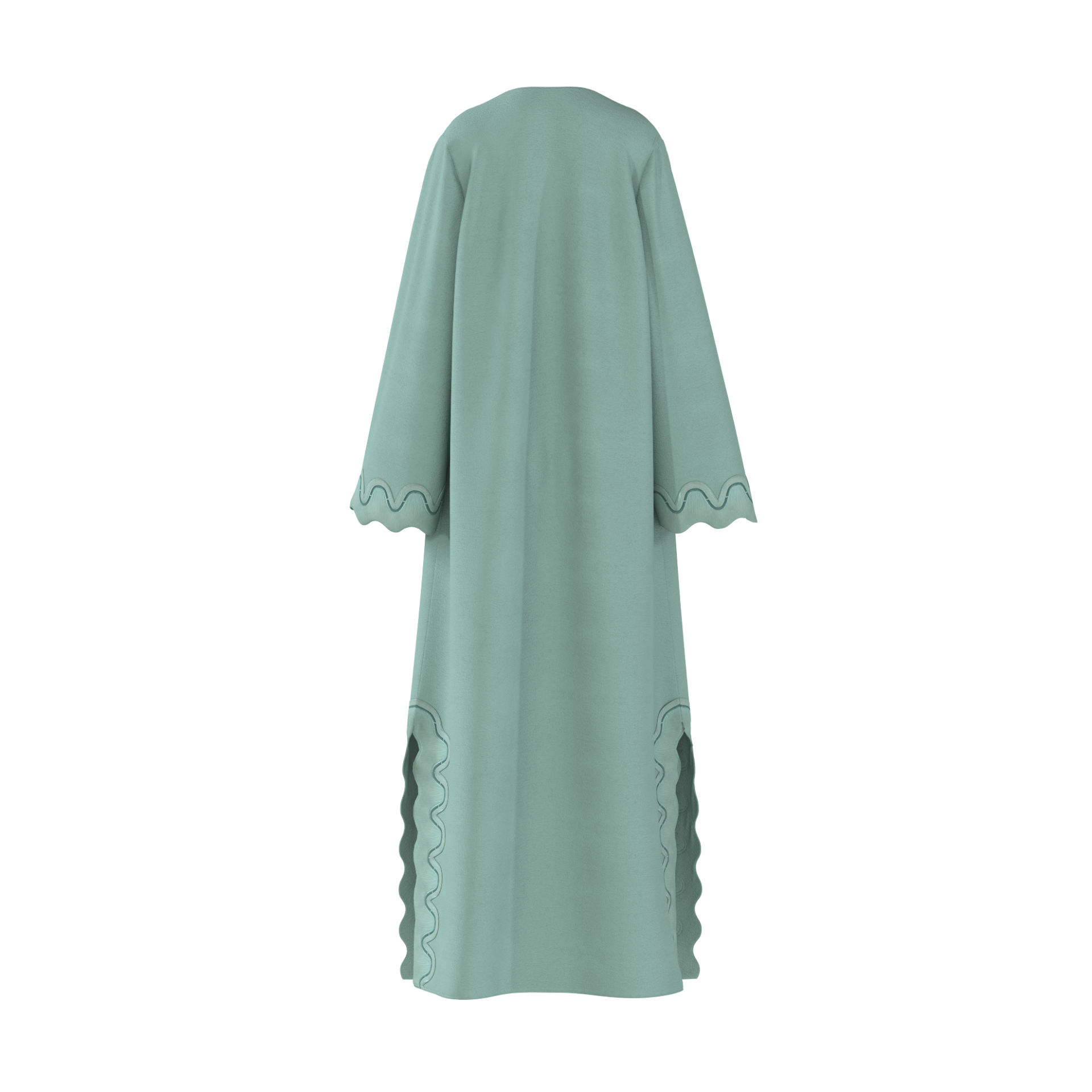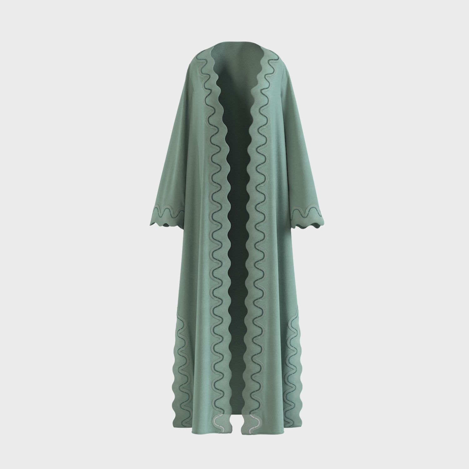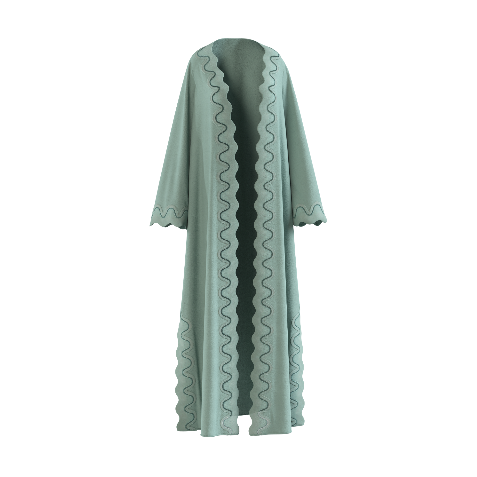 Indulge in the refreshing elegance of this sea foam green abaya, designed to elevate your wardrobe with its unique ch...