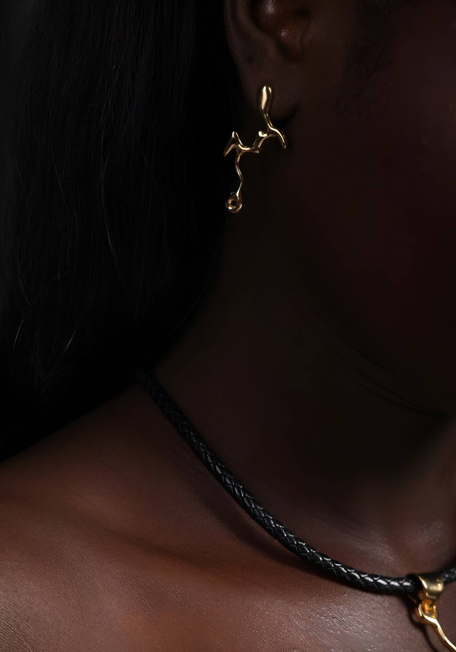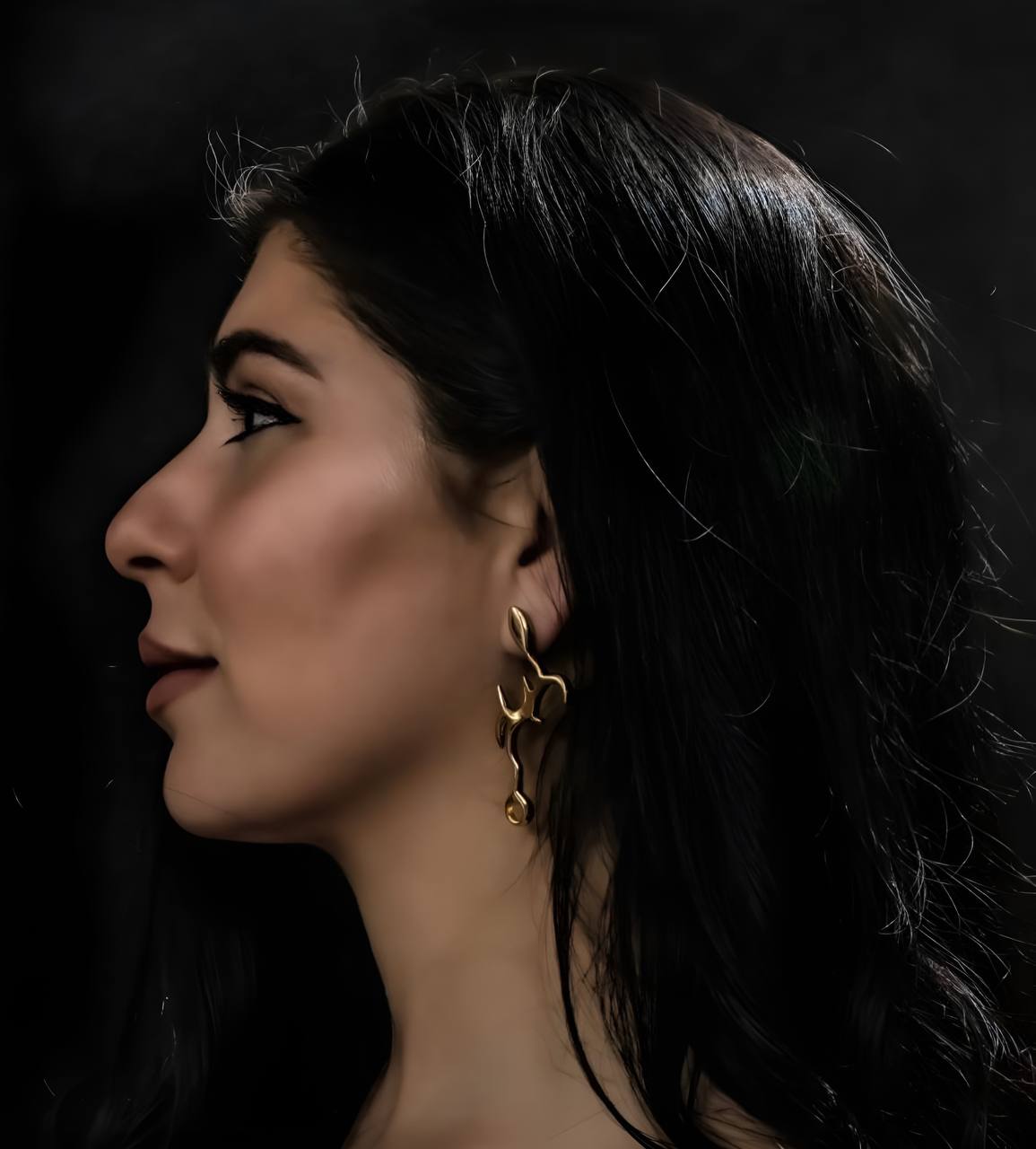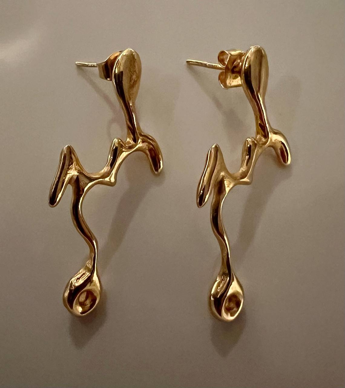 Make a bold statement with 'The Xzygote Lover Earrings' - striking 18k gold-plated adornments symbolizing the harmoni...